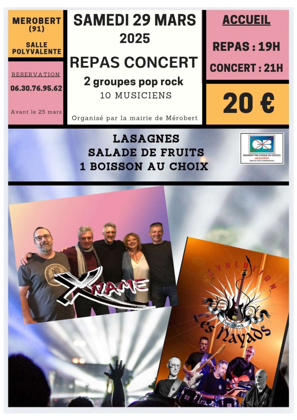 Ce samedi, un repas-concert a eu lieu à la salle polyvalente, animé par les groupes Xname et Les Nayads.