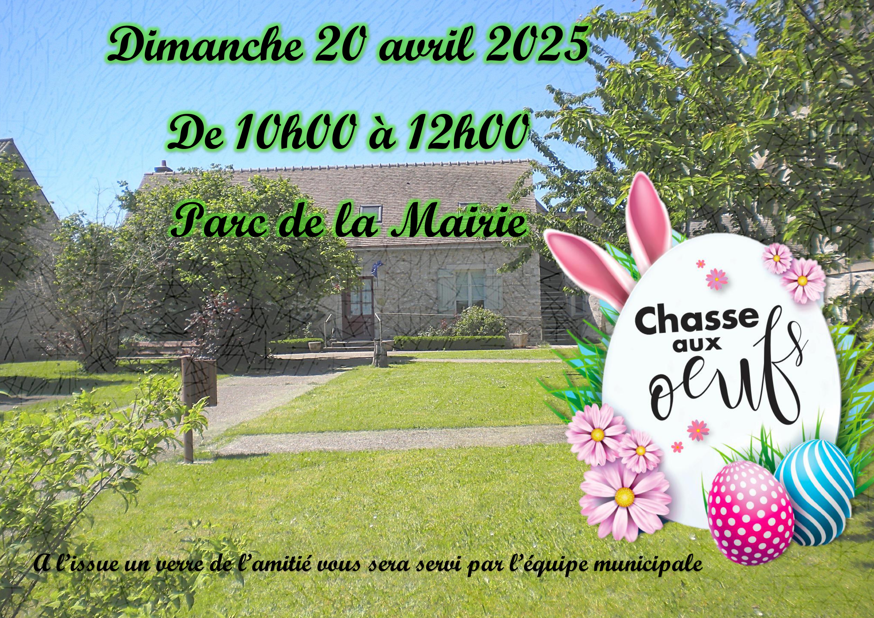 Ce jour-là, une chasse aux œufs a eu lieu dans le parc de la mairie, suivie d’un verre de l’amitié servi par notre équipe. 🐣🥂